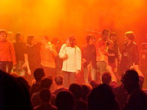 J'ai découvert les Wampas en concert, puisque je n'avais jamais eu l'occasion de les entendre avant. C'est Frank (dont le boulot est d'essayer de rattraper les guitares balancées au vol pendant le concert !) qui m'a invitée à venir les voir au moulin de Brainans (39), le 17 novembre 2000. Qu'ai-je à dire si ce n'est : allez les voir en concert, ils sont terrrrrribles ! débordant d'énergie, Didier Wampas, le chanteur, saute partout, balance what mille trucs, et fait le tour du public " dans " le public ; il distribue même des bisous à tout le monde, et il fait monter les gens sur la scène. Il y a sûrement un tas d'autres choses qu'il fait lors des autres concerts, c'est pour ça que je vous dis de ne pas hésiter à y aller même quand on ne connaît pas, parce qu'il n' y a pas moyen d'être déçu ! Côté musique, les Wampas font du rock alternatif français, donc qui n'est forcément pas commercial, et pourtant il ne faut pas oublier que les Wampas " sont les créateurs du rock 'n roll "! !